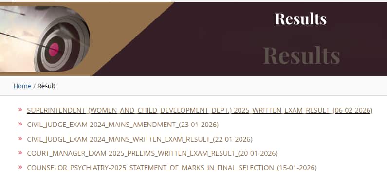 होमपेज पर उपलब्ध “Results” या “Notification” सेक्शन पर क्लिक करें।