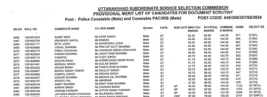 उत्तराखंड पुलिस कांस्टेबल रिजल्ट डायरेक्ट पीडीएफ लिंक